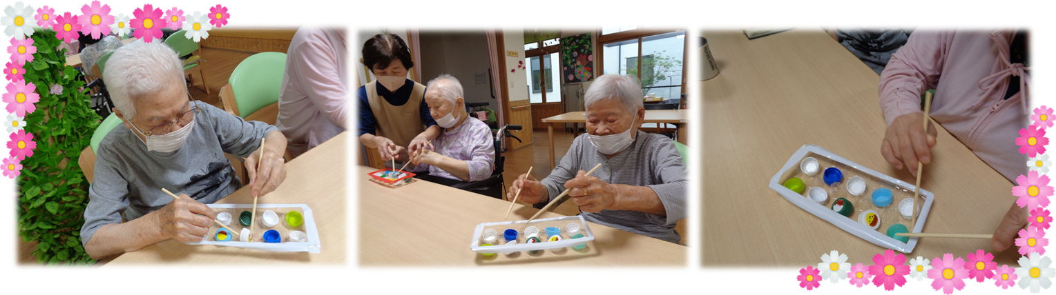 どこのご家庭にもある『卵ケース』を使ったレクリエーション😊 たこ焼きをイメージして、両手を使って割箸でひっくり返しますが….💦皆さん苦戦しているようで今回は最高4個でした😁 次回も20秒間チェレンジ✨頑張るぞ✌️