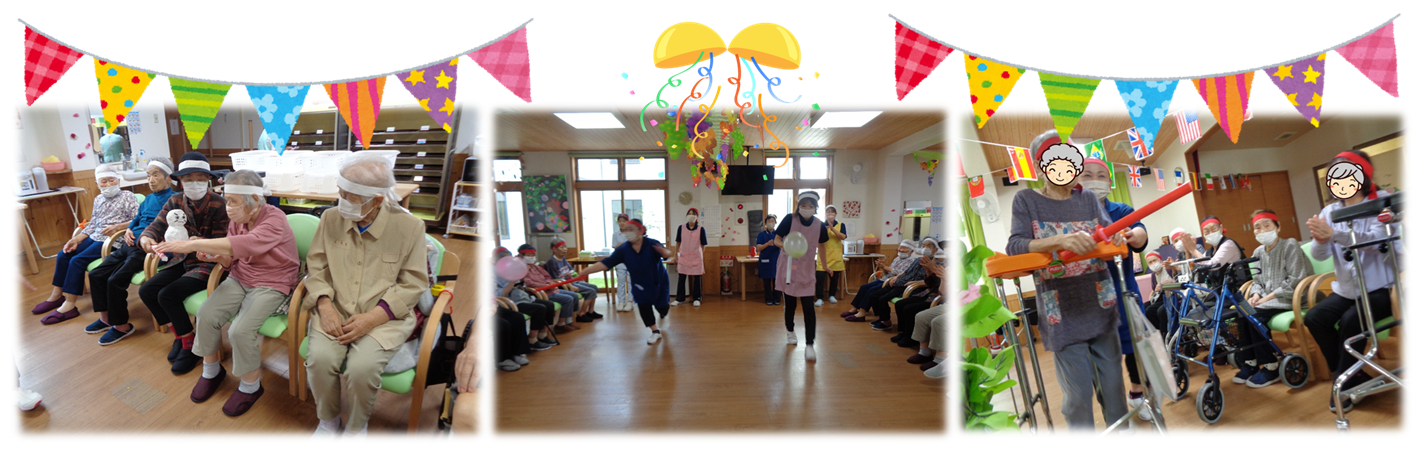 今日は待ちに待った大運動会❗楽しみにしていた手作り弁当で体力をつけたところで赤・白に分かれ、さぁ本番😊『だるま運び』では良い勝負を繰り広げ白組勝利💞『玉入れ』では赤組圧勝🩷 『モールバトンリレー』は白熱した戦いで白組勝利💕スタッフ競技も皆さんに喜んでいただきました✌️
