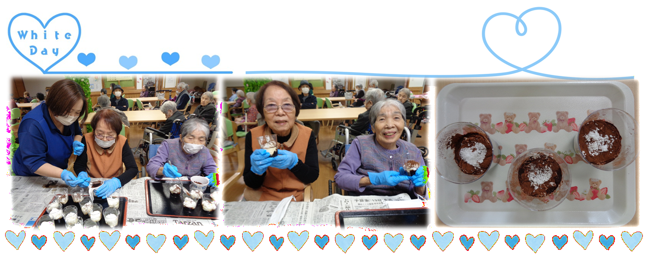 利用者様と一緒にお菓子作り❗ティラミス風グラスデザート💕コーヒーゼリーにヨーグルト、 生クリームを重ね3層にし、仕上げはココアパウダーをかけシュガーパウダーで🤍にしました😊 ほろ苦さと甘さが調和し「美味しいね」と皆さん大満足でした😄